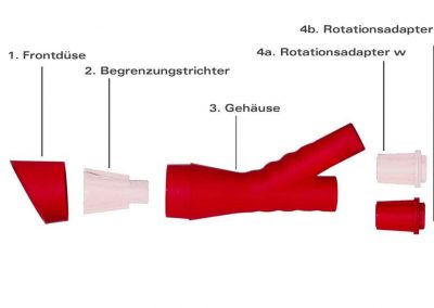 El Rotador® ADAPTOR es el suplemento más esperado, que une las pistolas de limpieza por impulsos con los aspiradores de seco y mojado. Montado de manera rápida y sin problemas, combina la fuerza de impacto de la fresa de rotación con (o sin) líquido de limpieza y la aspiración de su aspirador. El Rotador® ADAPTOR se puede girar en 270° y se adapta sencillamente a los diferentes ángulos de trabajo. Esto facilita el manejo incluso en zonas de trabajo de difícil acceso y hace del Rotador® ADAPTOR un equipo profesional aún más imprescindible si cabe en el preparación de vehículos. El Rotador® ADAPTOR se puede montar para todas las pistolas de limpieza por impulsos Tornador®: Z-010, Z-014, Z-020, S-Serie y RS-Serie