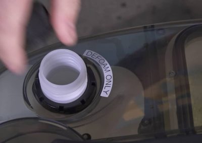 El tanque de antiespumante integrado por separado permite el uso de agentes antiespumantes y evita que los tensioactivos en el tanque de agua sucia provoquen un exceso de espuma.