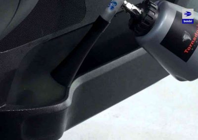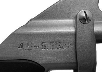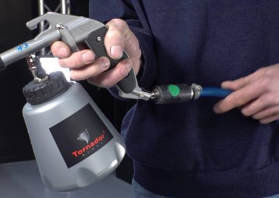 Con la pistola Tornador® BLACK Z-020RS y la novedosa técnica de impulsos por muelle para una limpieza óptima podrá actuar sin piedad contra cualquier tipo de suciedad. Con una presión de aproximadamente 4,5 ya se consigue una excepcional limpieza profunda. La Tornador® Black Z-020RS se puede utilizar incluso con un compresor de émbolo de 230V – 2,2 kW, siempre que este disponga de un volumen de suministro de 270 l/min. como mínimo. De este modo, la Tornador® Black Z-020RS no solo es idónea para su uso en un sitio fijo sino que también puede utilizarse en cualquier lugar.