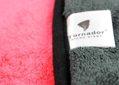 La serie de trapos Tornador® especialmente desarrollada para el ámbito del automóvil, compuesta por Tornador® CRYSTAL CLEAR, Tornador® CABIN, Tornador® BUFF, Tornador® MICRO, Tornador® MICRO PRO y Tornador® MICRO GIANT, se fabrica de las mejores microfibras parcialmente recubiertas de la máxima calidad. Sobre la base de los deseos de clientes y de las sugerencias de los mismos, nuestros fabricantes pudieron desarrollar nuevos trapos que consiguen mejores resultados que los productos de microfibra comparables.