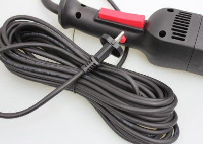 The 900 watts motor provides a very strong erosion without producing swirls and holograms. A 10 meter long cable allows the operator a large action scope.
