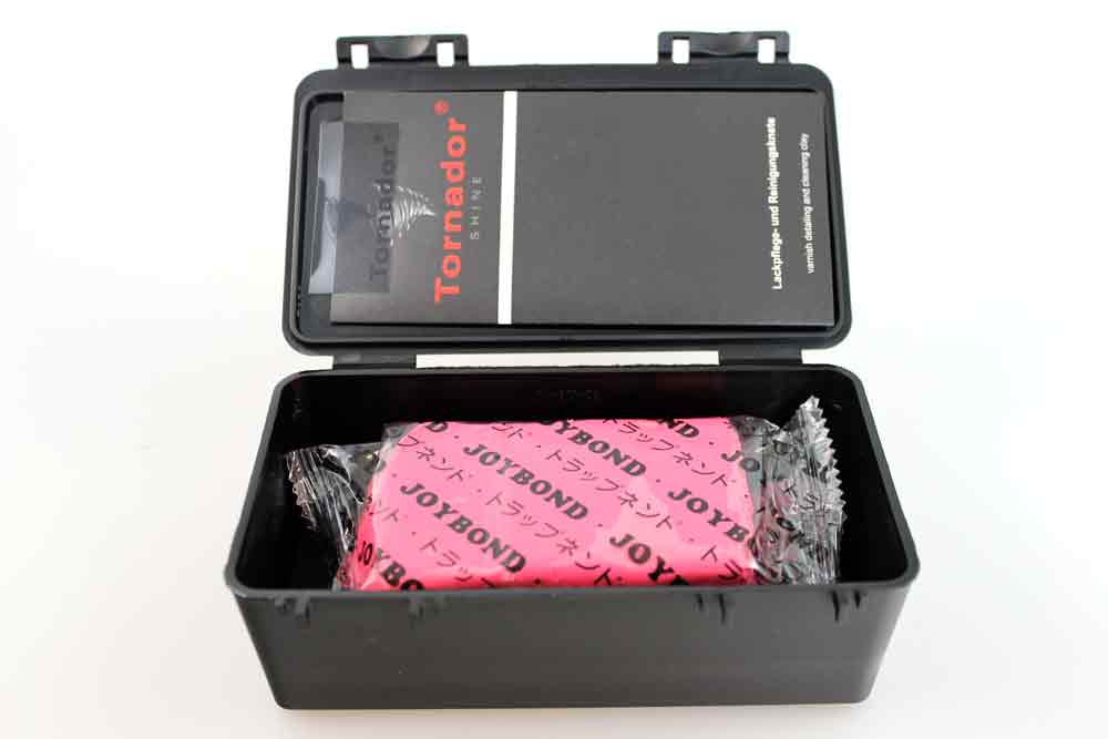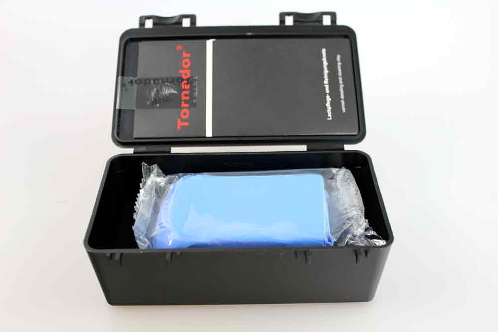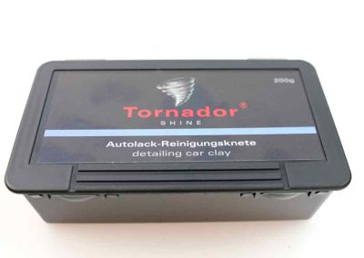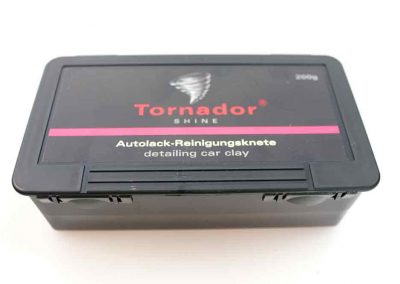 Tornador® SHINE es la preparación perfecta para la limpieza y el cuidado de pinturas de vehículos contaminadas. Tornador® SHINE es el ayudante ideal para eliminar las sedimentaciones, como p. ej. partículas de óxido adheridas, alquitrán, resina de árbol, insectos o también restos de pulverización de pintura o de color. Tornador® SHINE le ayuda a limpiar la superficie de pintura de su vehículo. Tornador® SHINE suelta las sedimentaciones más resistentes sobre todas las superficies lisas, como p. ej. pintura, cristal, cromo, etc. Para el grado de suciedad respectivo usted recibirá la masilla de limpieza y cuidado Tornador® SHINE diseñada de manera correspondiente.