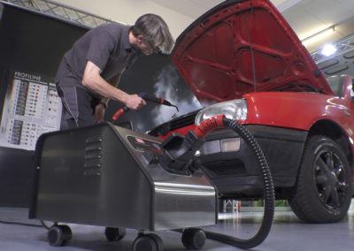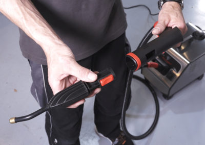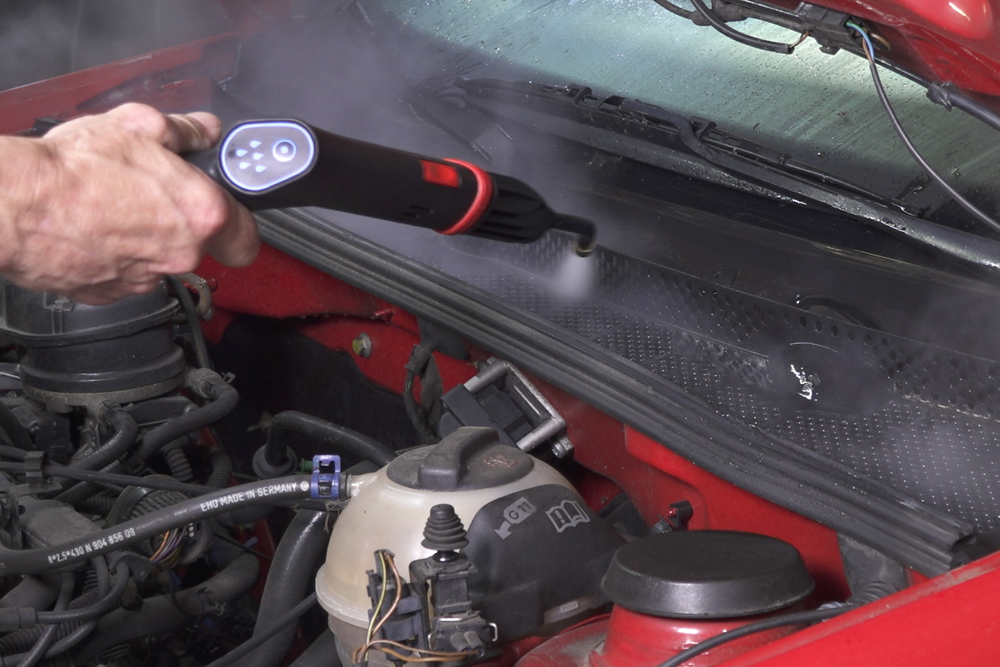 Potente limpiador a vapor con función de agua caliente incluida. Con vapor a altas temperaturas (desde 140 °C) es posible eliminar eficazmente la suciedad y evitar de forma duradera la proliferación de gérmenes y bacterias. El vapor caliente se volatiliza rápidamente, aporta poca humedad al objeto y minimiza los tiempos de secado y entrega. Ideal para la limpieza del habitáculo interior y el vano del motor.